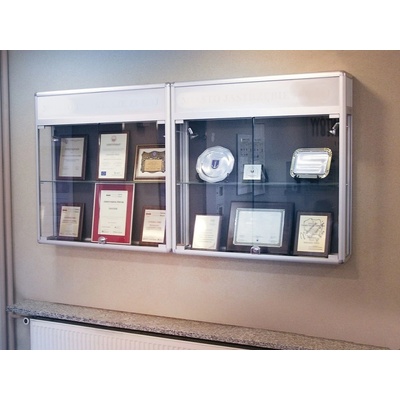 ZAV02K Závesná presklená vitrína s možnosťou nalepenia reklamy či loga, určená na vystavenie tovaru, trofejí, pohárov apod. Kalené sklo v hliníkovom profile. Táto vitrína sa...